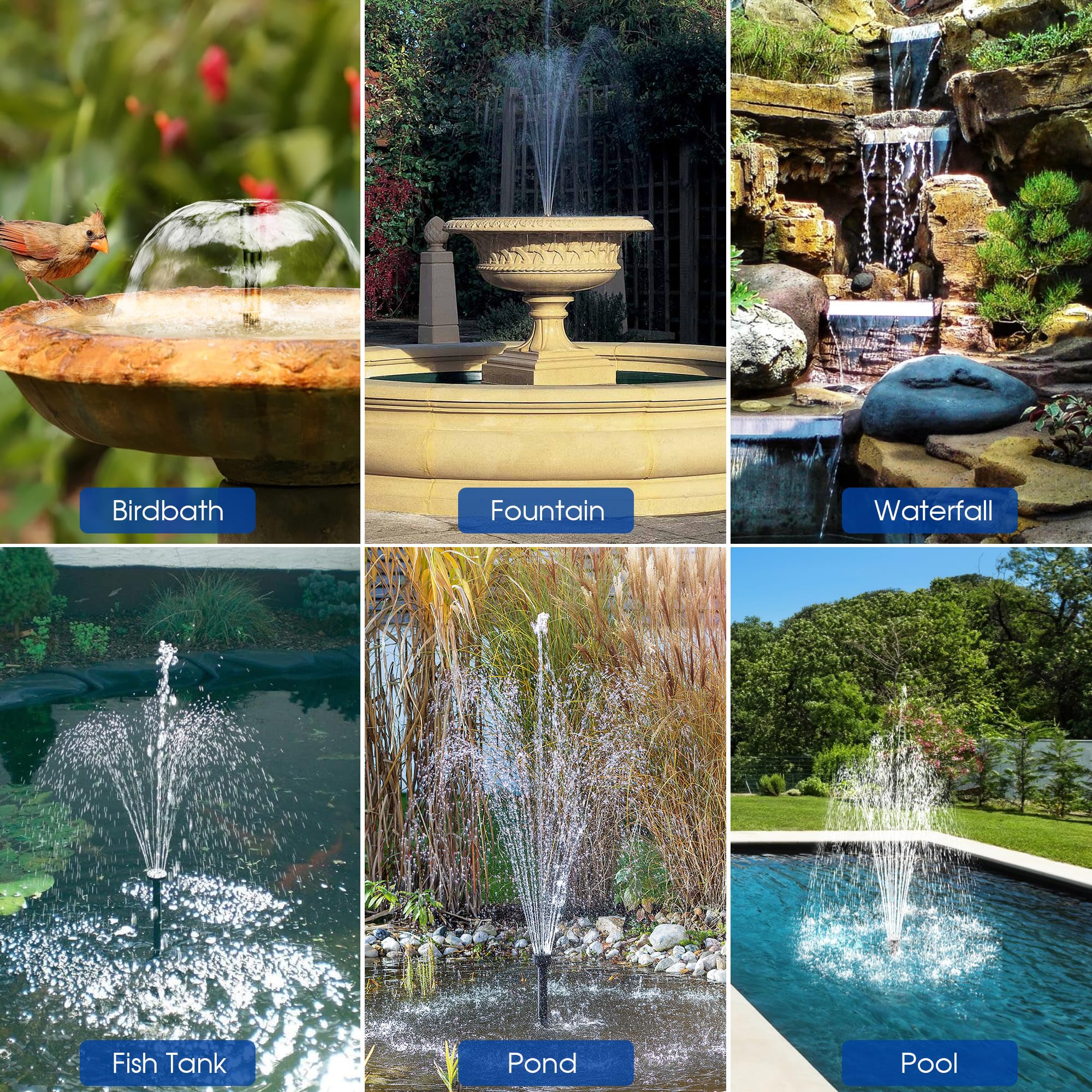 Wide Applications: Biling solar water pump is wide suitable for outdoor Garden, such as birdbath,Fountain, Waterfall, aquarium, pond, Swiming pool and other uses. Suitable for your DIY use with the Pipe multi-venue and multi-functional needs
