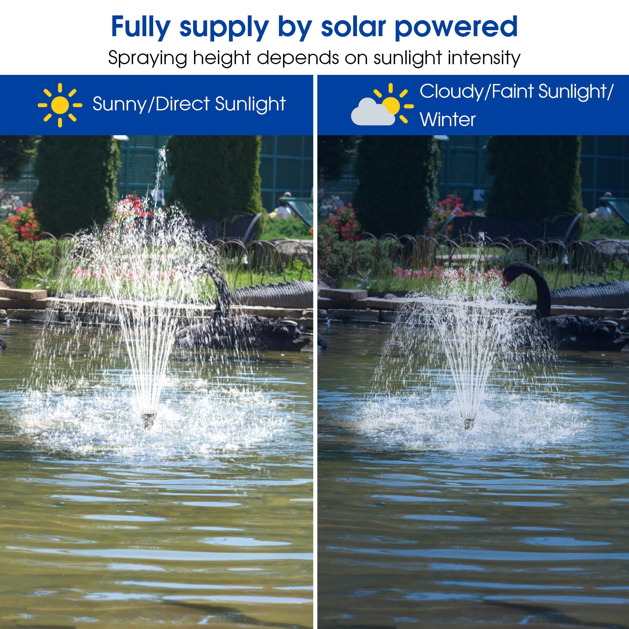 Efficient, Long-lasting Solar Panel: Our solar fountain Panel uses solar tempered glass laminate panel and High quality Solar Cell, which the light energy conversion rate is about 5% higher than the ordinary, Solar Panel use long time up to 18-20 years.