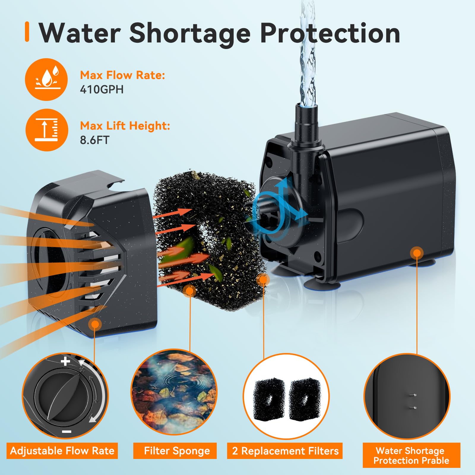 Anti-Dry Run Protection: Automatic shut-off activates when water level is low, extending pump lifespan.
