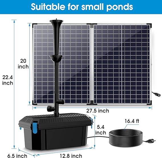Biling Pond Filter with 62W Solar Panel, 660 GPH Water Pump