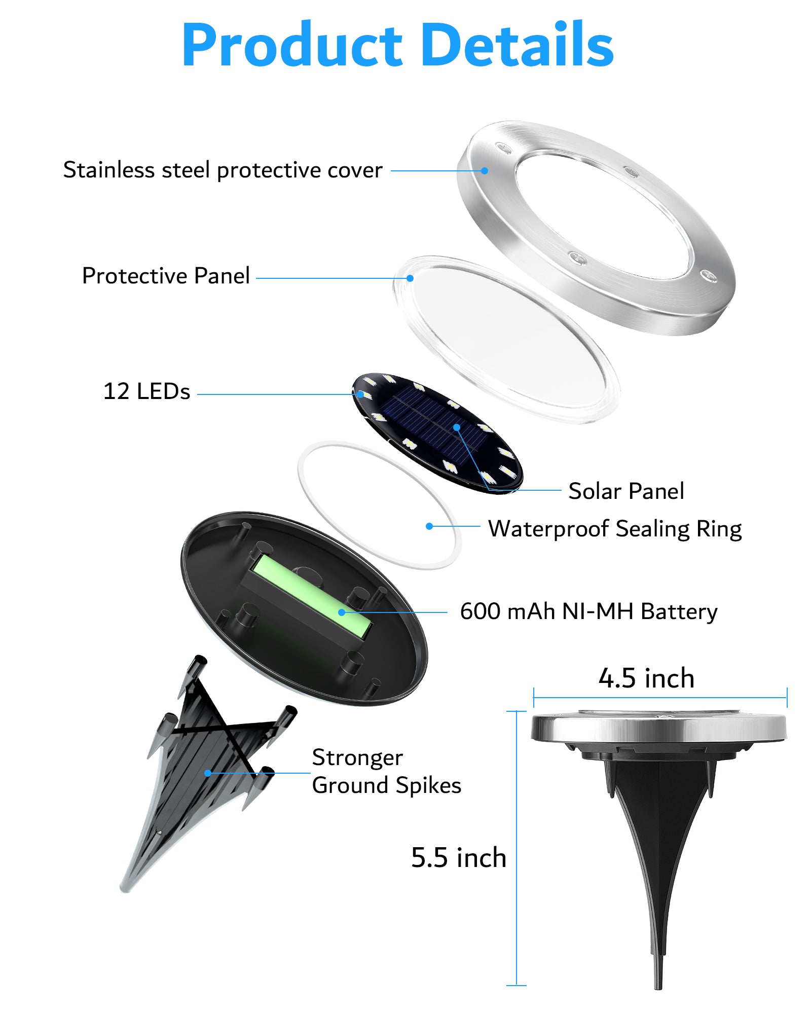 AR POWERED OUTDOOR LIGHTS: We use larger areas of solar panels to convert solar energy, so although charging and work time will change depending on the weather, each solar disk light typically illuminates for 8-10 hours after 4-6 hours of charging. We also seal the electronic components to make them have a longer service life. Our solar lights will brighten your yard longer.Thanks for subscribing!